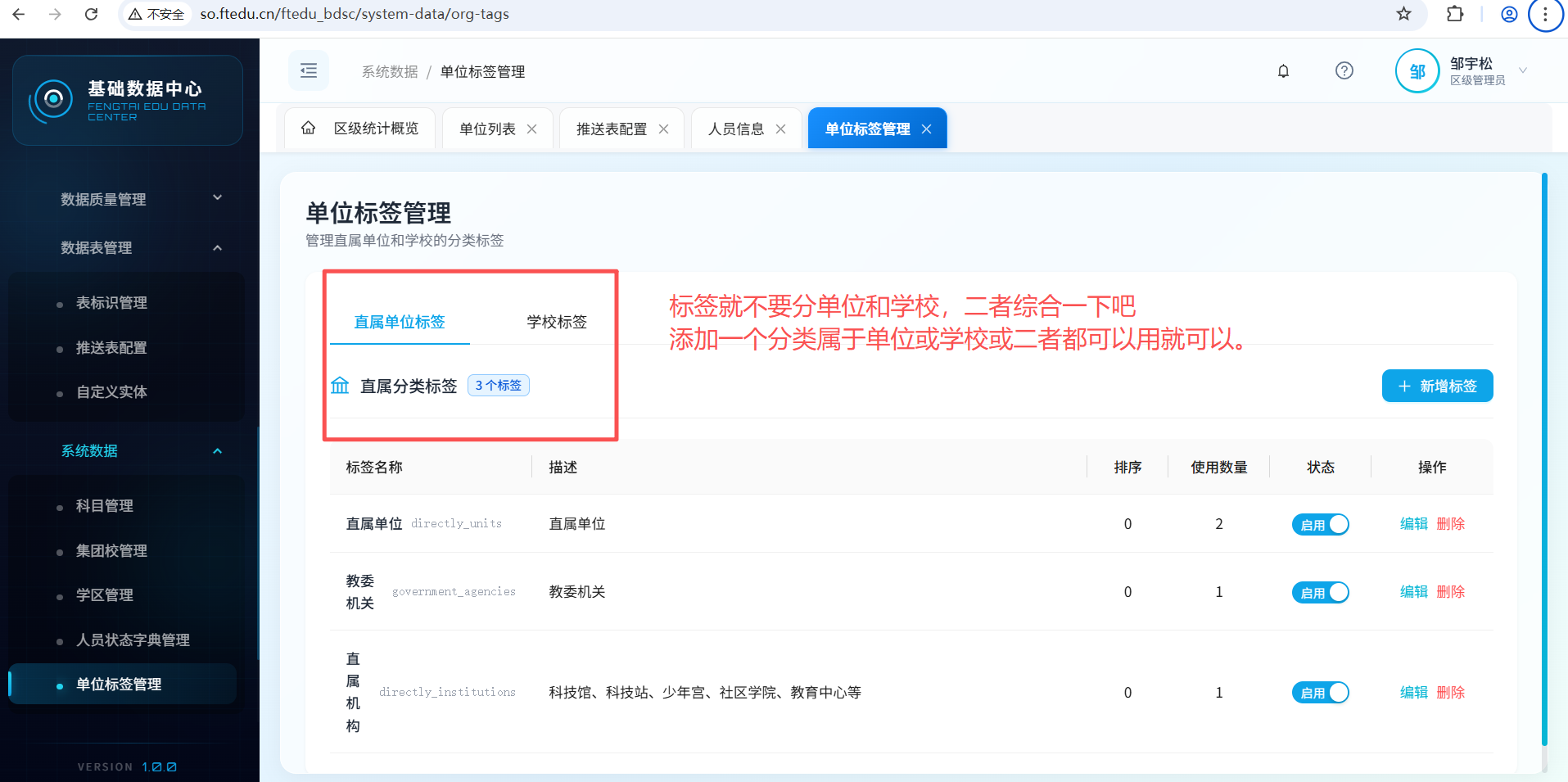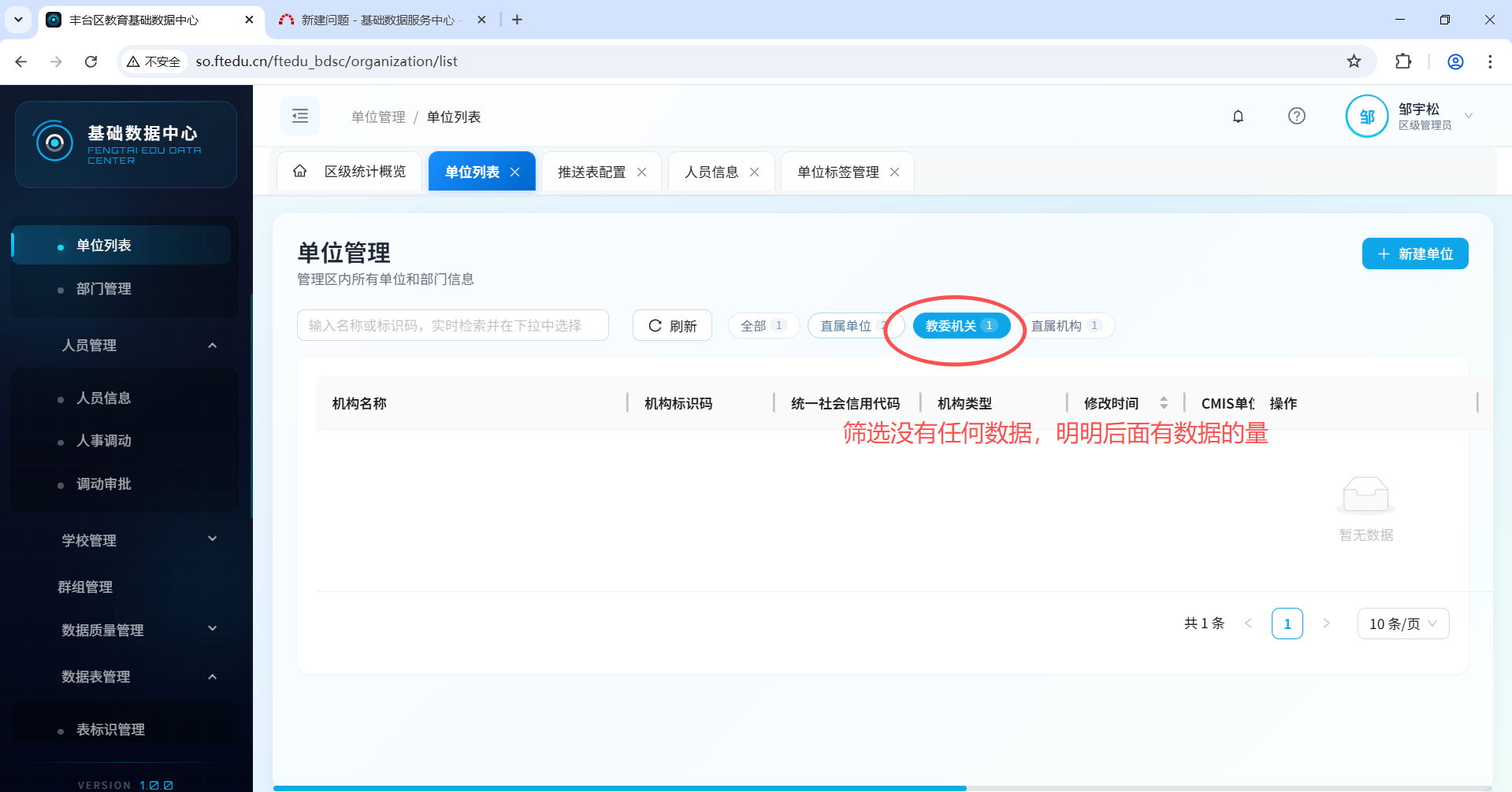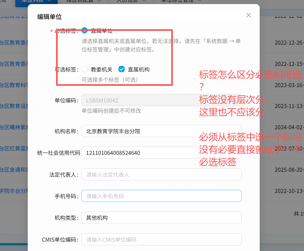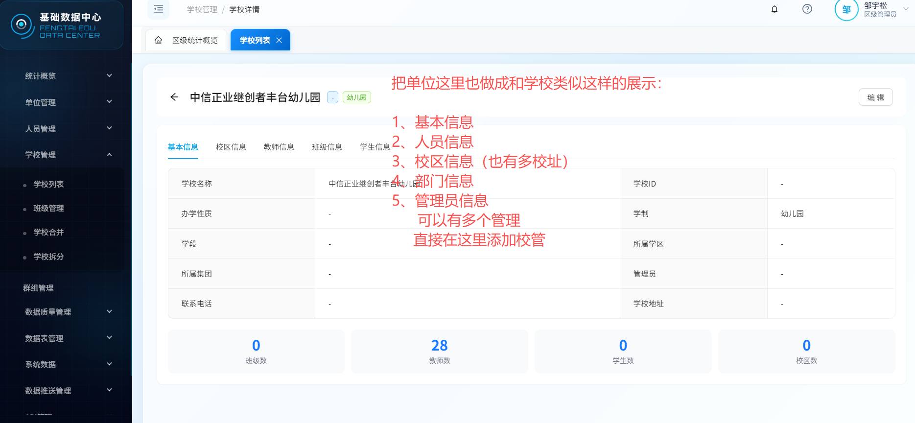 校管管理里的学校需要把单位也添加进来