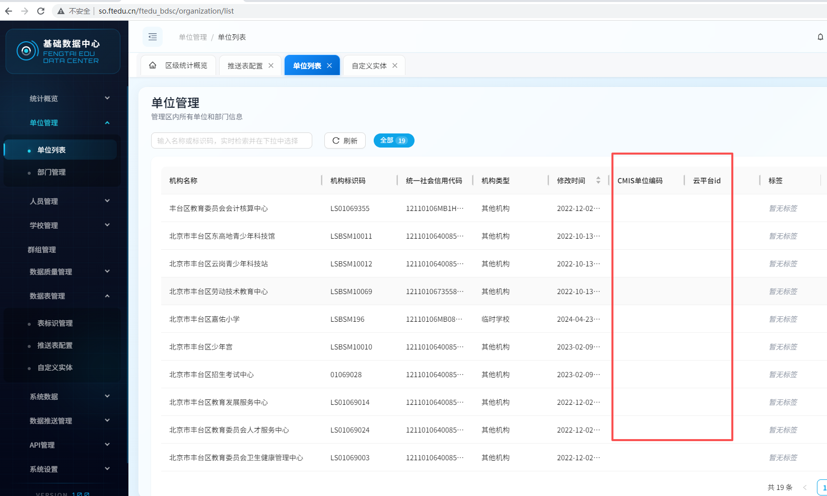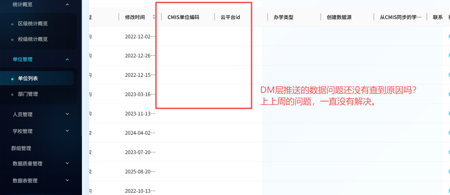 单位数据新增的字段数据已推送,但显示不出数据,请检查问题