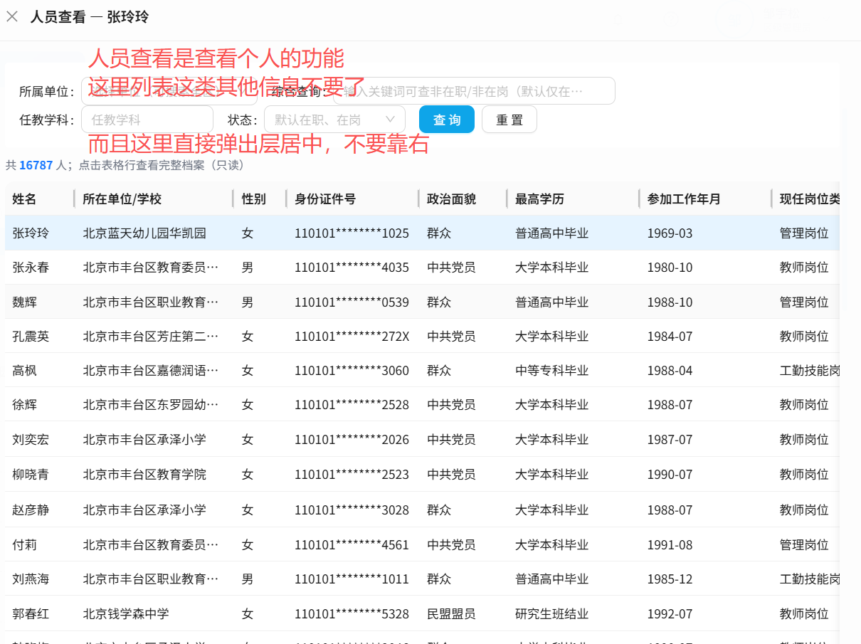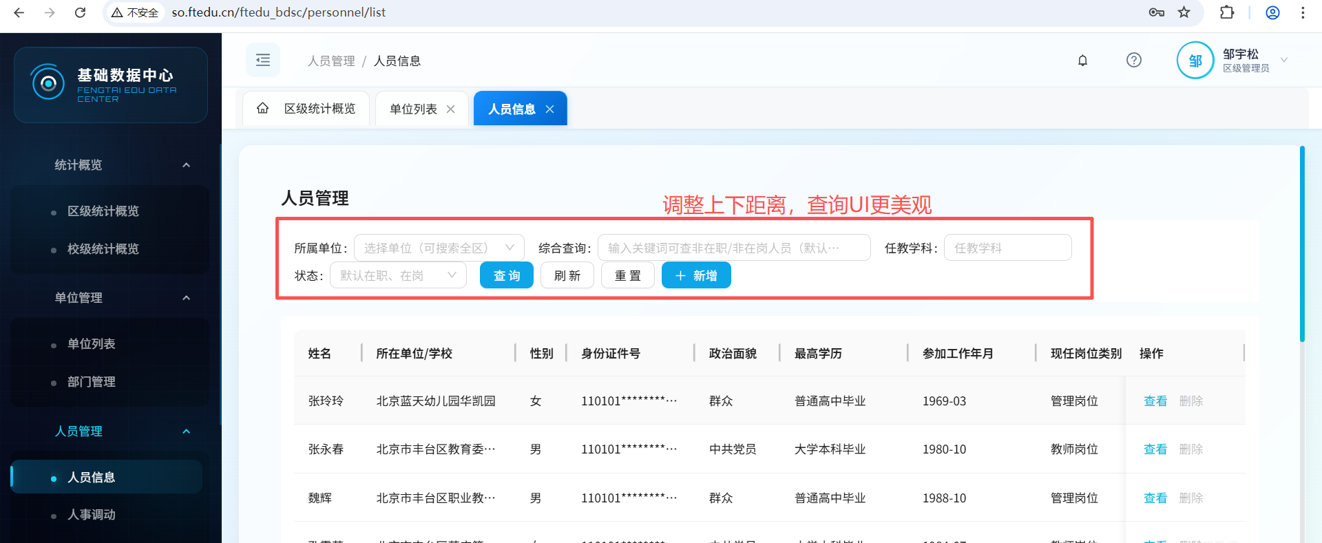 人员管理的查询UI界面调整