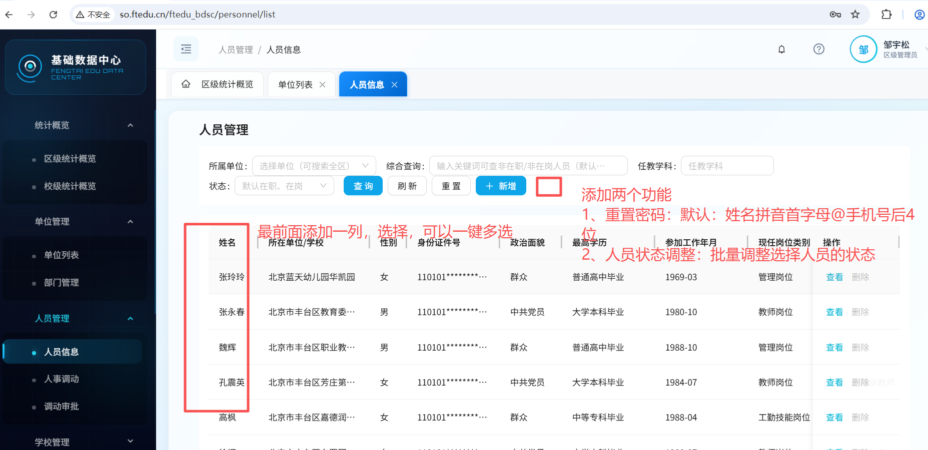 人员管理功能新增