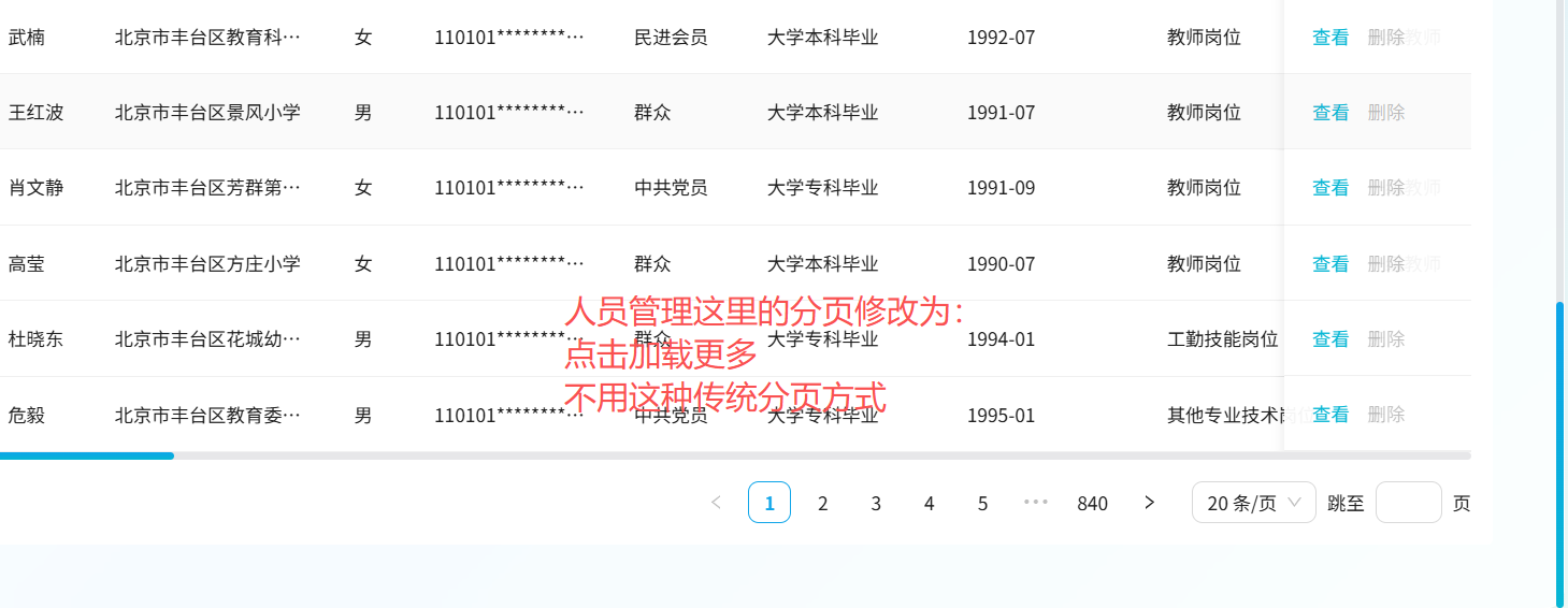 人员管理功能分页功能修改
