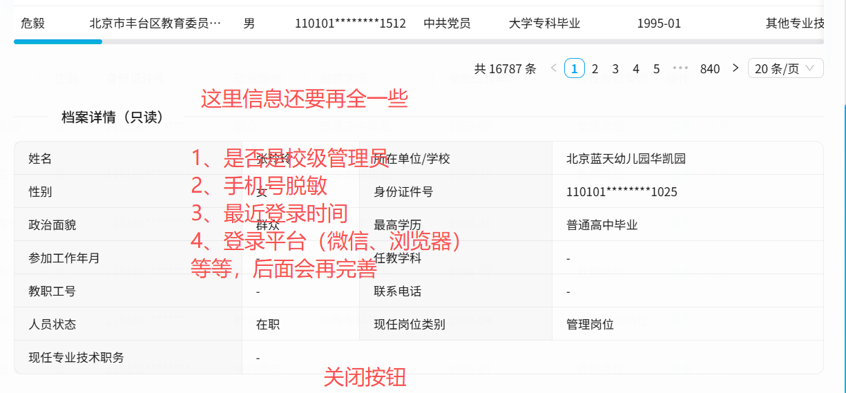 人员详细功能完善