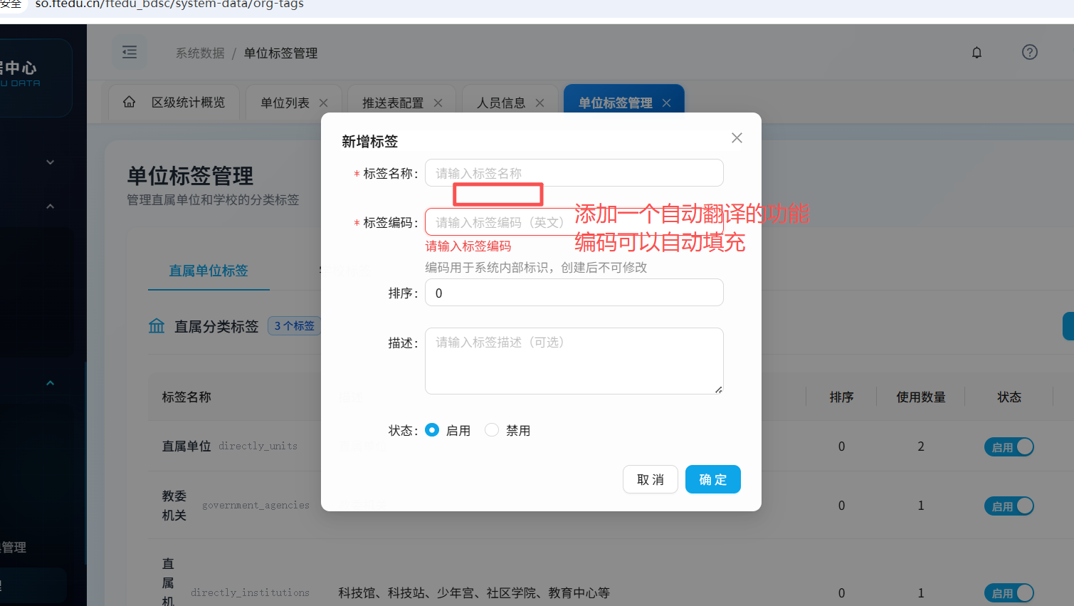 单位标签的添加的编码,添加一个自动翻译的功能