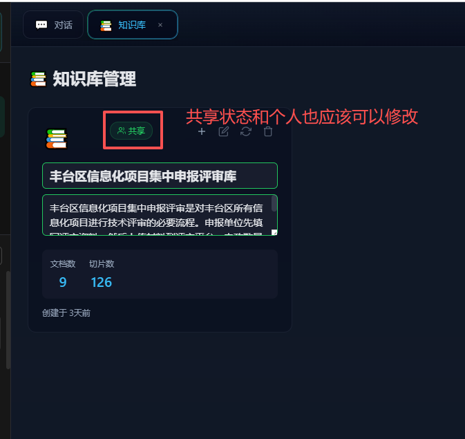 知识库共享和个人也可以修改状态
